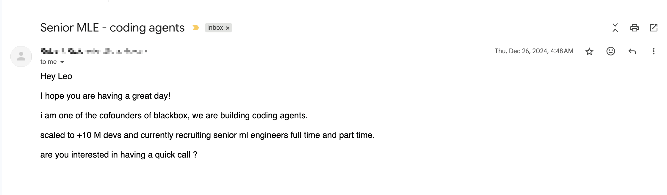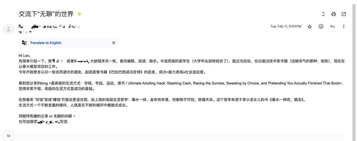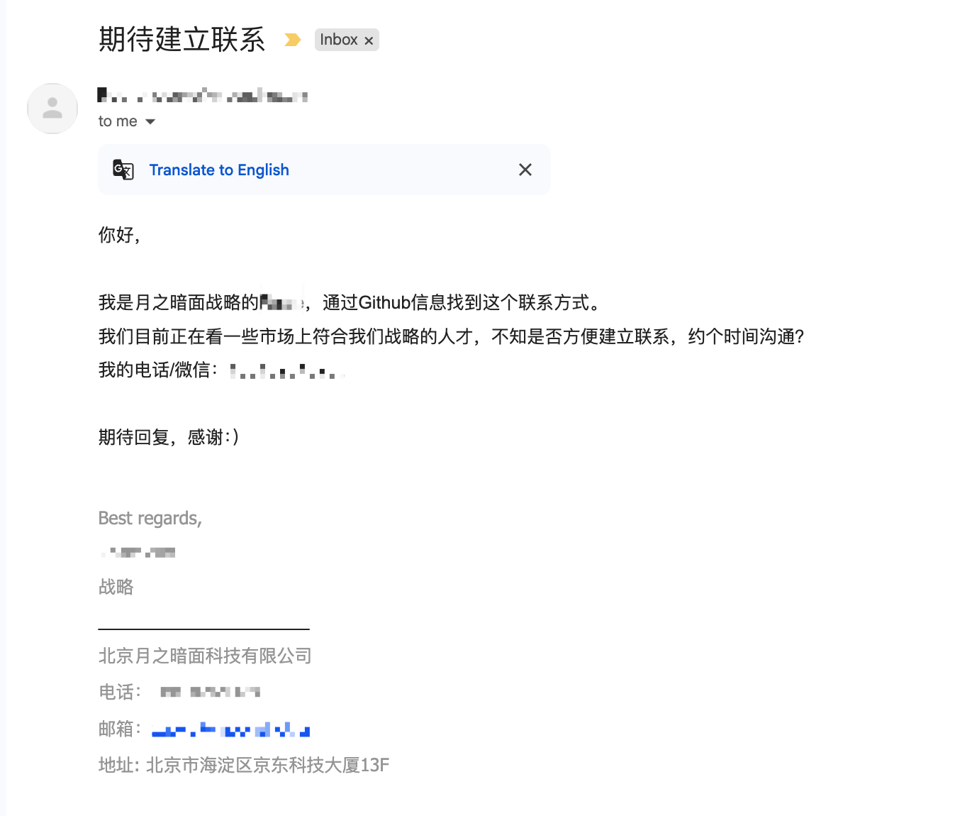 每次收到别人的来信我都很高兴!不只是工作机会,还有被认可的感觉,这是持续输出的长尾效应,也是做开源的魅力,更是坚持长期主义的胜利。