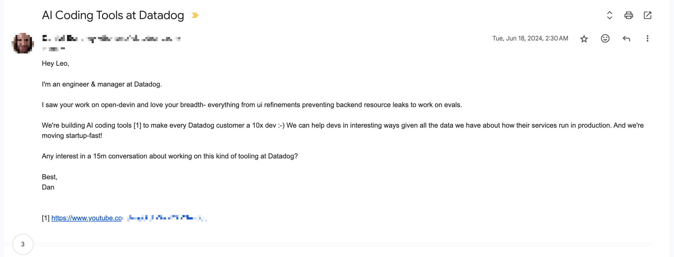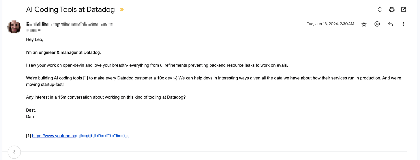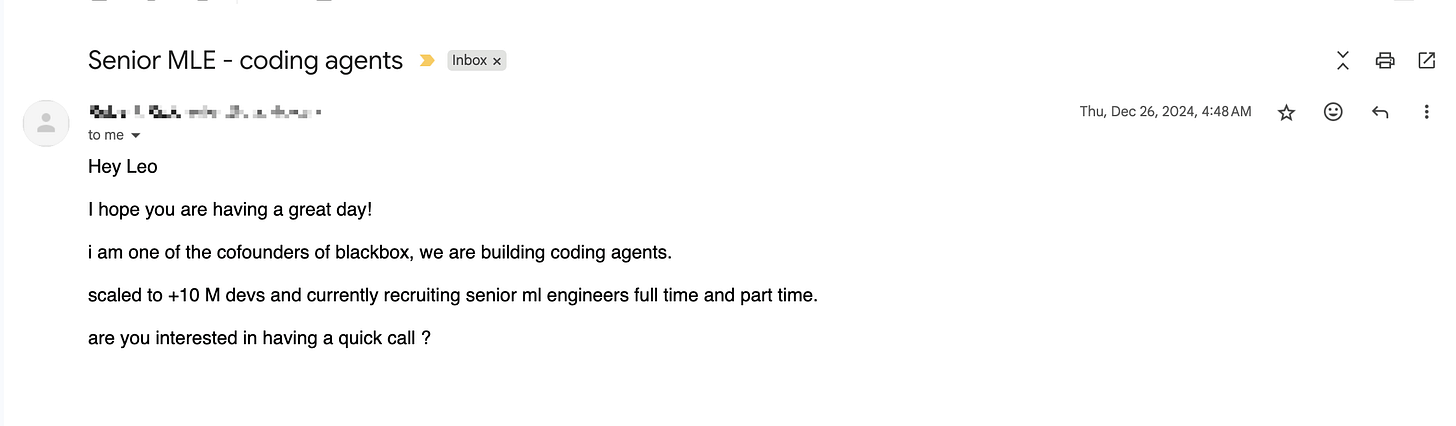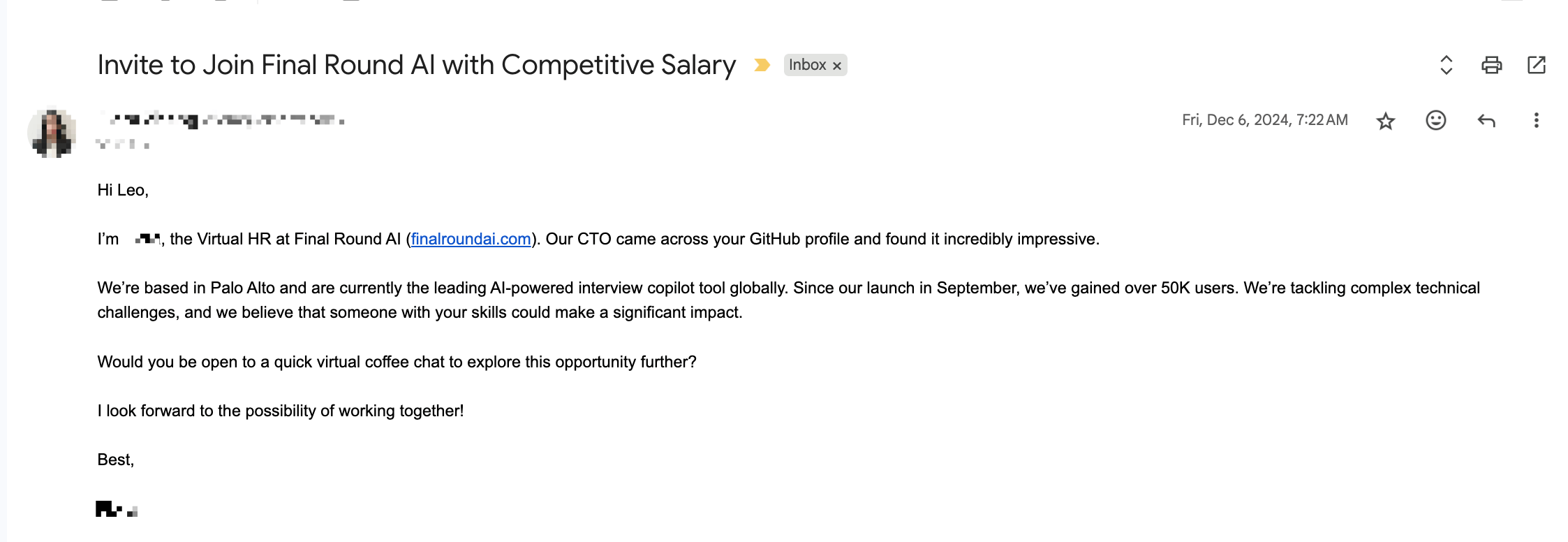 每次收到别人的来信我都很高兴!不只是工作机会,还有被认可的感觉,这是持续输出的长尾效应,也是做开源的魅力,更是坚持长期主义的胜利。