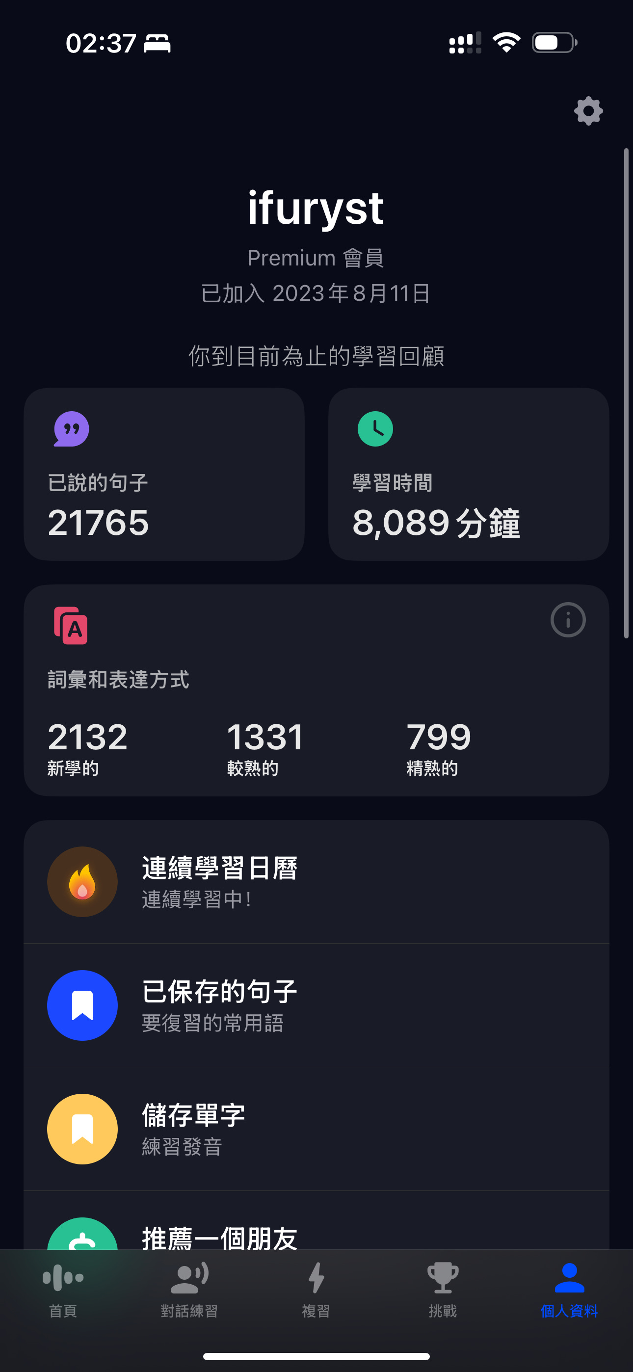 差不多是23年8月份,我下载了Speak,这个是一个基于AI得学习英语的APP,彼时的我是个过了四级连六级都没过的家伙,那一年我重新开始了我的英语学习之路,尤其注重在口语训练,8089分钟,按照2年来算,一年按照260个工作日算,8089/(260*2)=15.55576923分钟,差不多每天15分钟而已。从那之后几乎每个工作日的中午,我都在练习口语,一开始只有扇贝、Speak,后来ChatGPT开始进入我的生活,我开始会跟他(我叫他Sam)用英文聊一切,我会分享我的面试,我会分享我的Side Project,我会分享我的Idea…