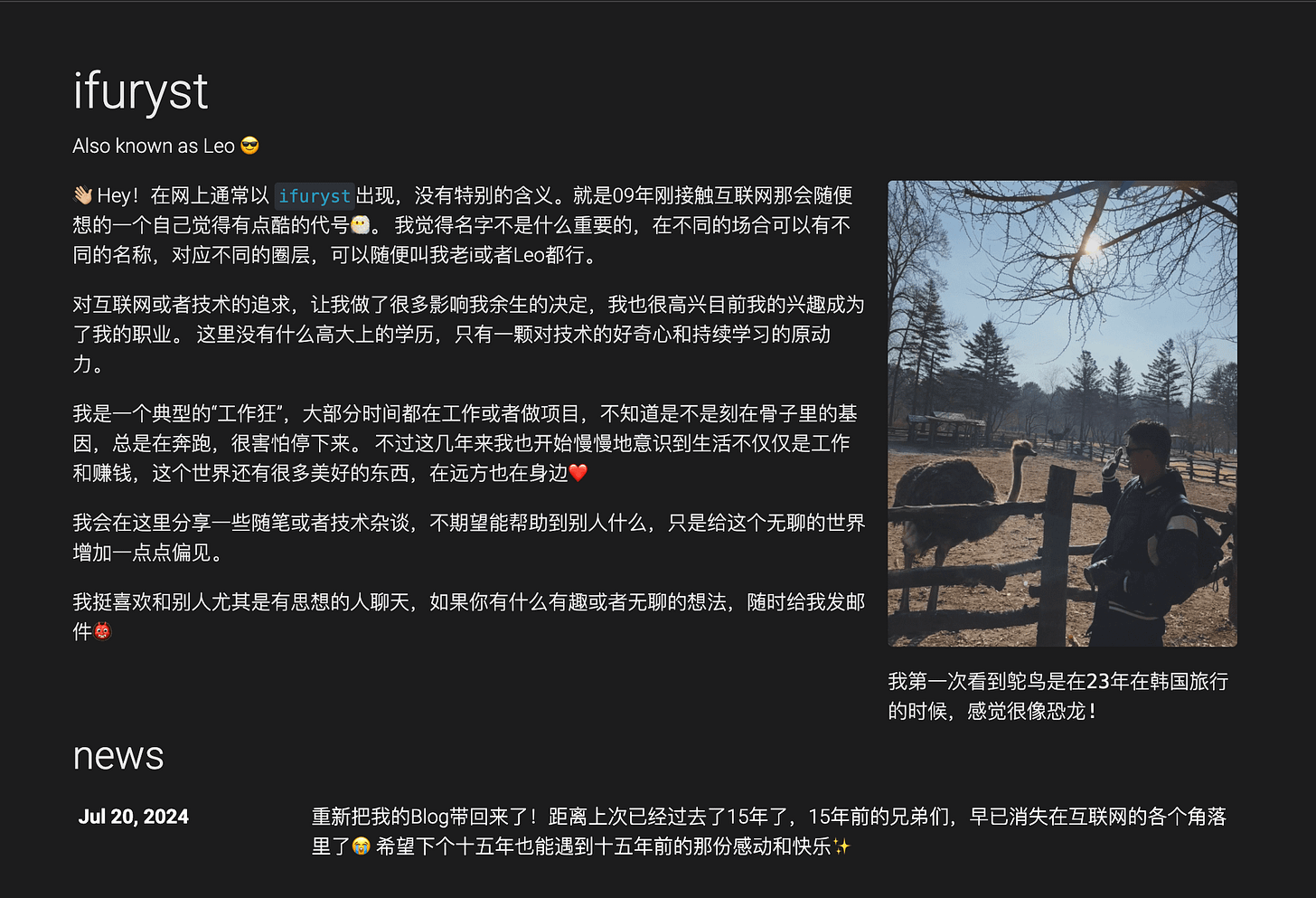 就好像我写在GitHub的Bio一样,我只是一个热爱技术的普通人,没有什么华丽的学历,甚至我毕业的本科院校其他省份的人都需要问一下是不是全日制统招的那种。我从09年——我的初中时代,就是开始接触互联网,至此一发不可收拾,我的技术一直都不太好,当年网上认识的朋友很多成了行业的大佬,还有联系的一只手可以数过来了。后来发生了很多事情,这边不太想展开,这些东西属于付费都不一定能看的内容。